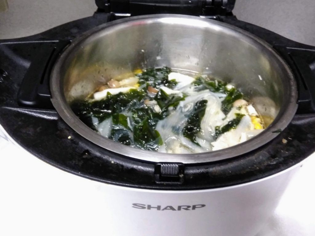 ごはんを炊いて、ホットクックにスープを作ってもらって、あれば漬物を出して、夕飯完成。