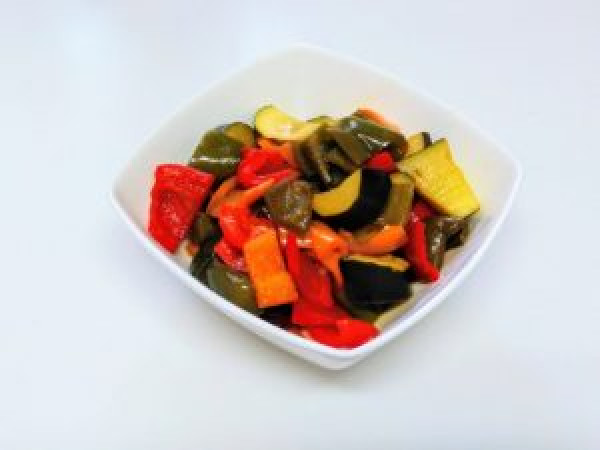パプリカとズッキーニの和え物も冷凍できます。ピーマンが入っていても大丈夫。出来上がったものは取り分けて冷凍しておきます。