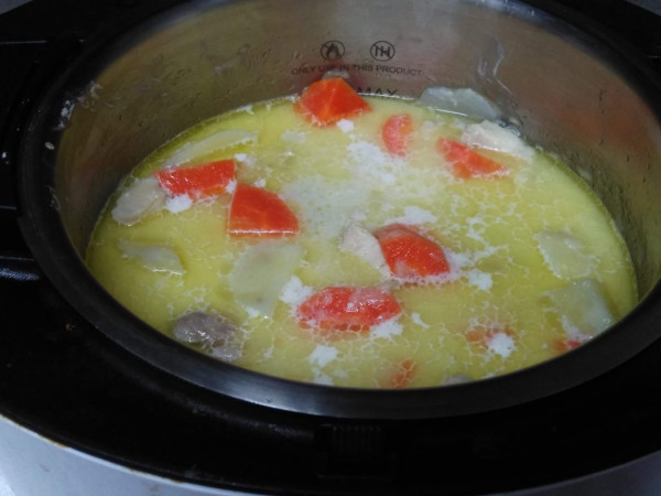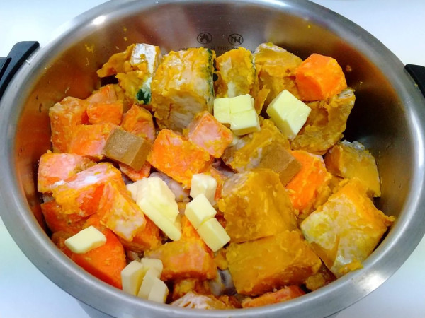 通常のクリームシチューのレシピではじゃがいもを使用します。じゃがいもがなければかぼちゃを使ってもいいと思います。