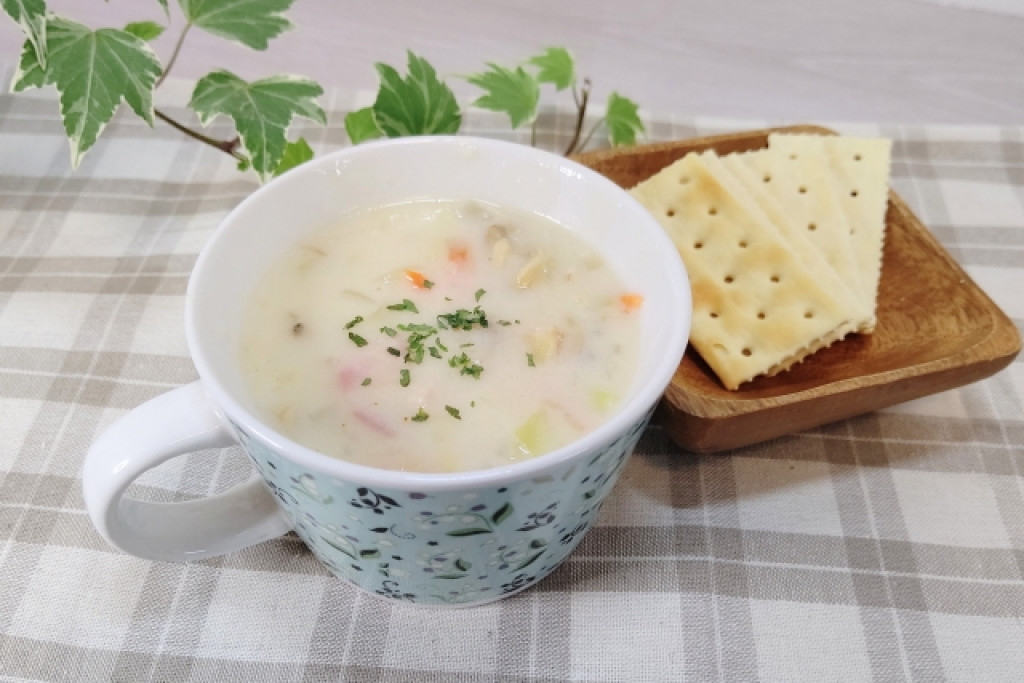 クラムチャウダーのレシピ(※あさりの水煮缶使用)はここから確認できます(SHARP公式サイトに移動)。
